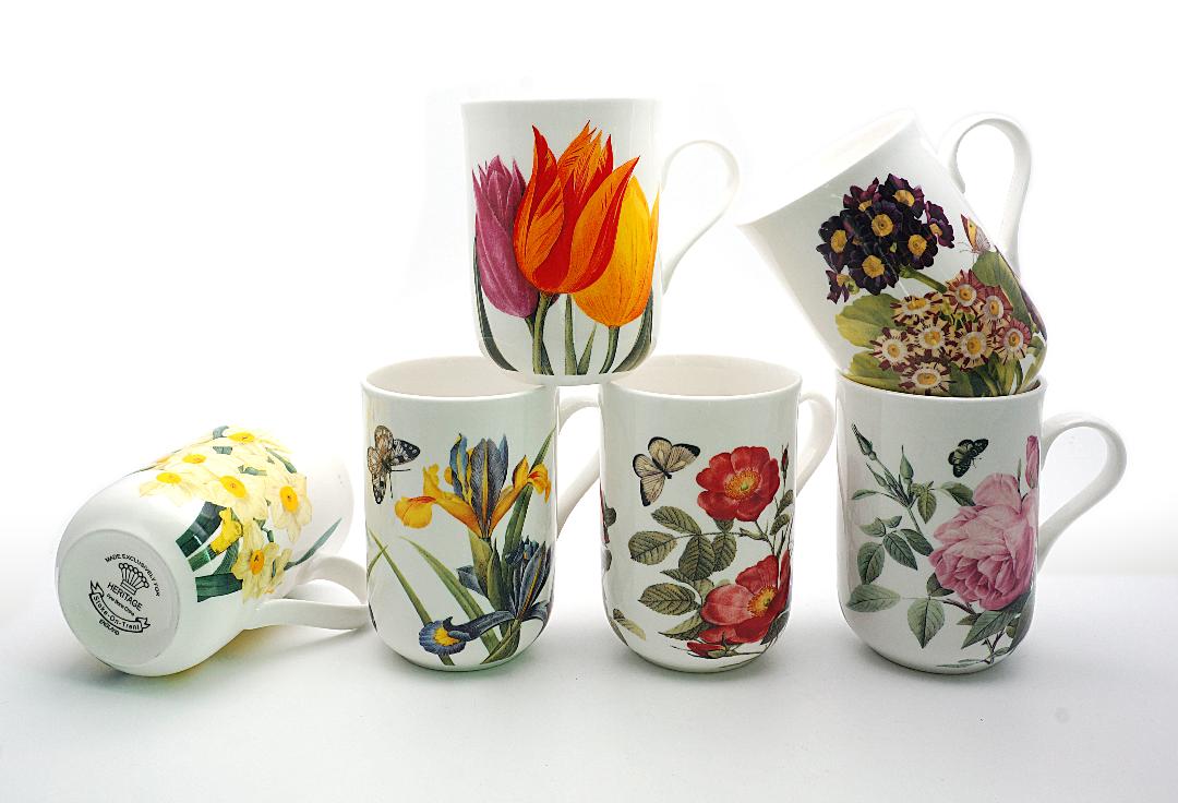 Heritage assorted flowers   set of 6 fine bone china mugs