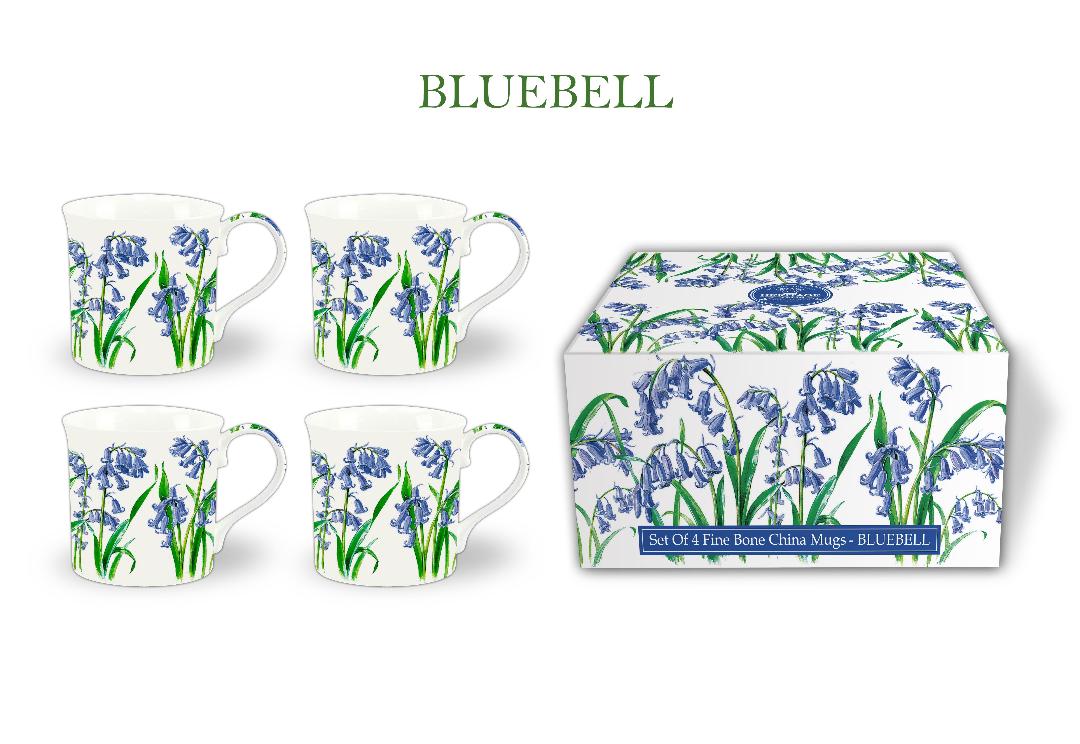 SET OF 4 FINE BONE CHINA MUGS, ALL AROUND PRINT