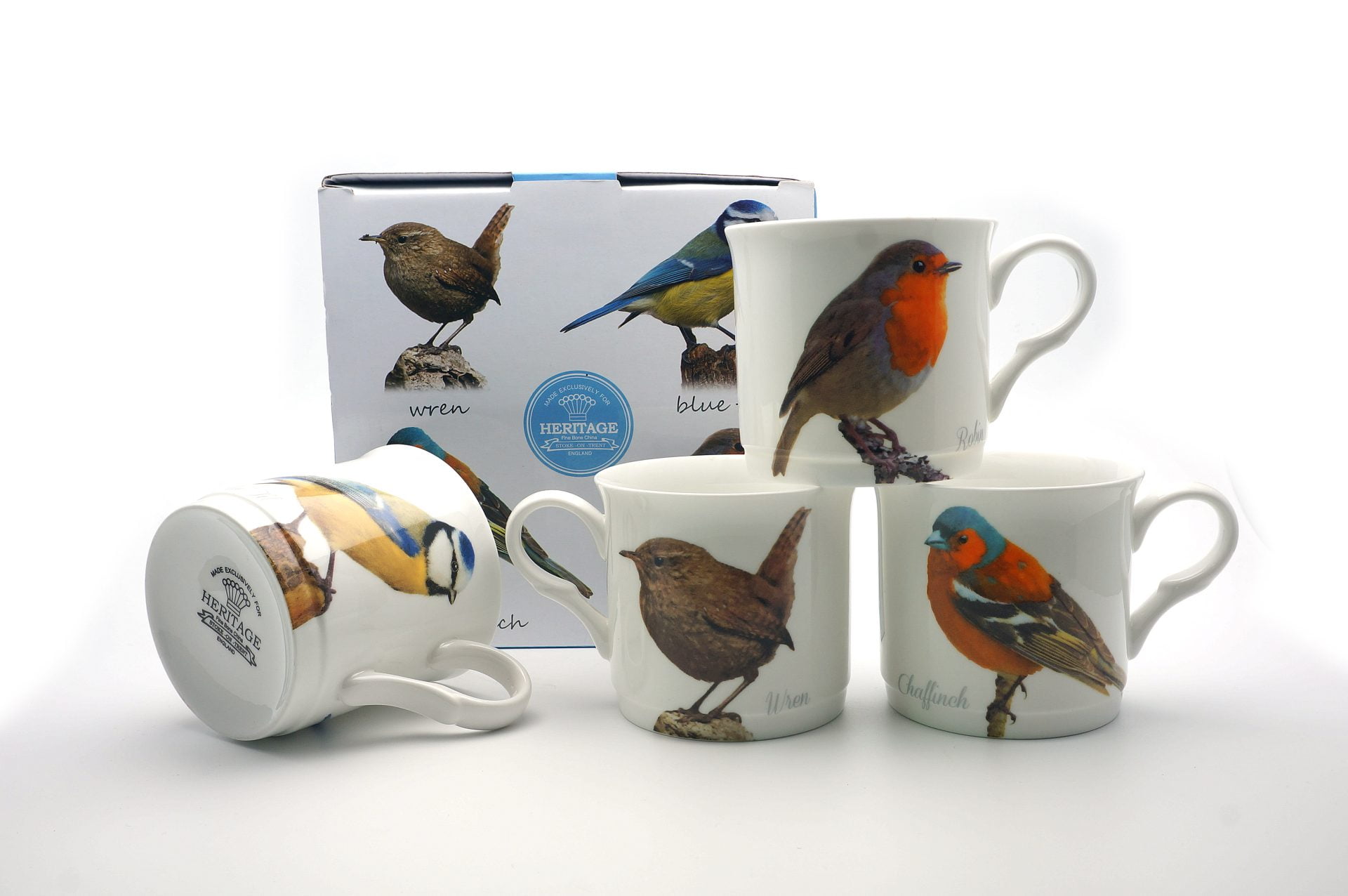 Set Of 4 Fine Bone China Mugs Garden Birds