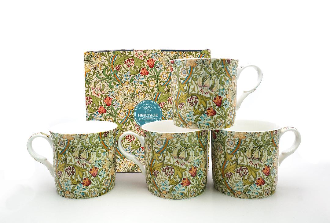 Set Of 4 Fine Bone China Mugs Golden Lilly