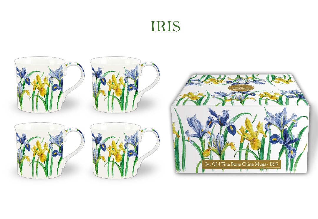 SET OF 4 FINE BONE CHINA MUGS, ALL AROUND PRINT