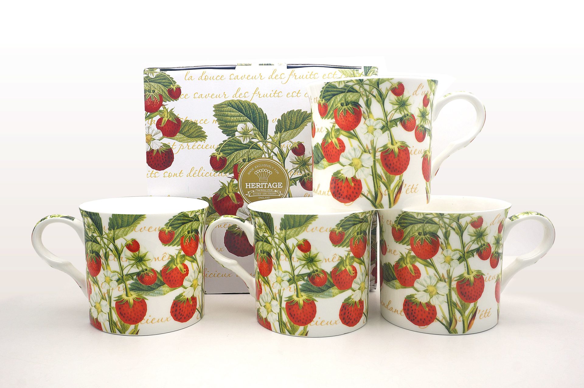 SET OF 4 FINE BONE CHINA MUGS, ALL AROUND PRINT