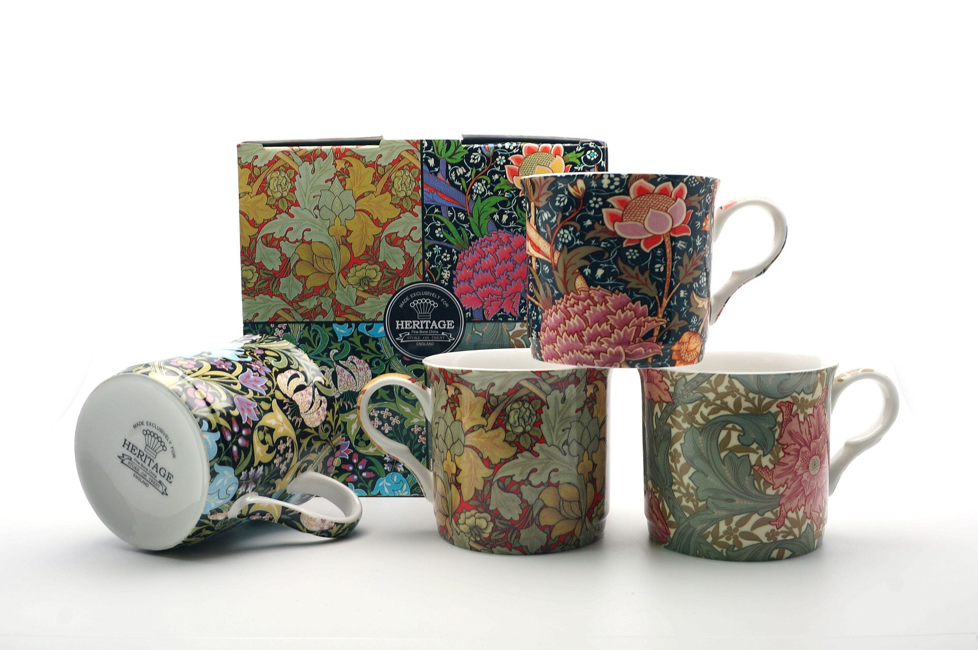 SET OF 4 FINE BONE CHINA MUGS, ALL AROUND PRINT