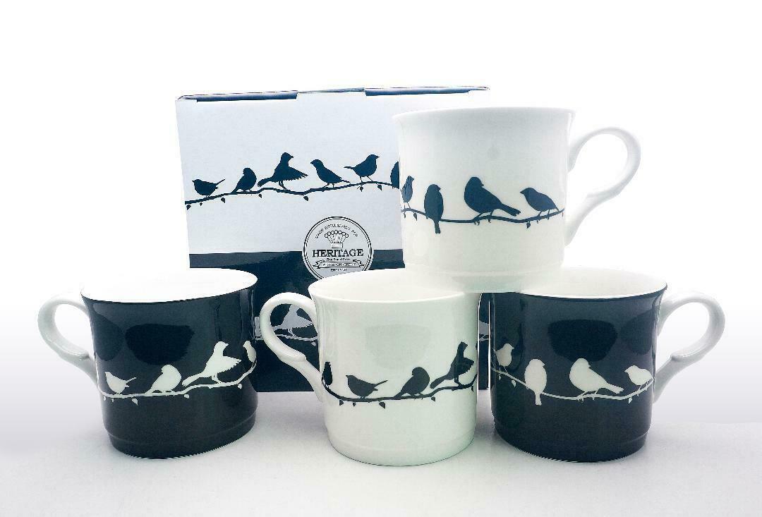 Set Of 4 Gift Set Birds Silhouette Mugs