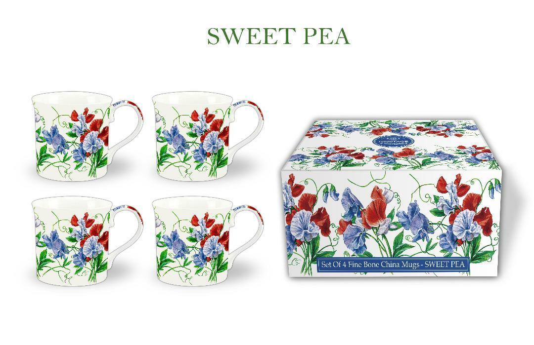 Set Of 4 Gift Sweet Pea Fine Bone China Mugs
