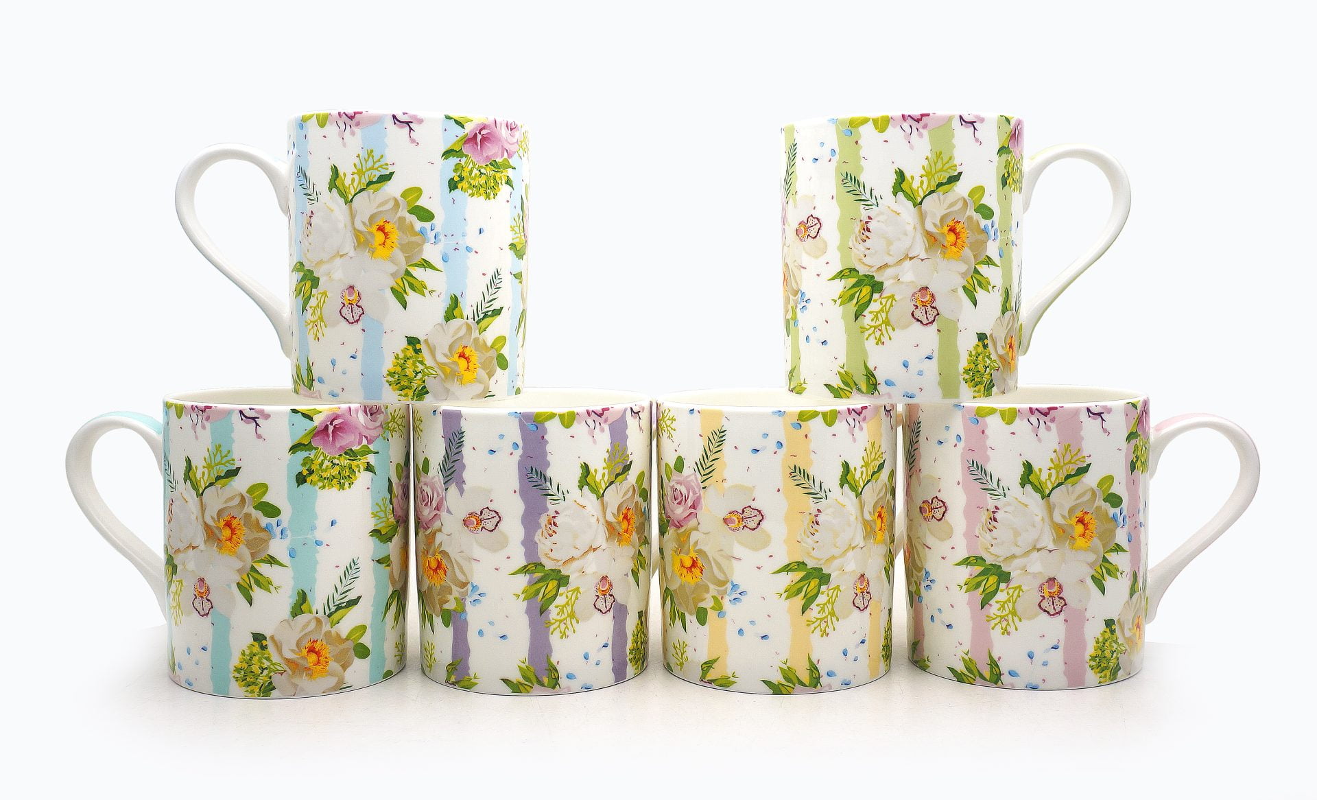 Wildflowers Balmoral set of 6 fine bone china mugs